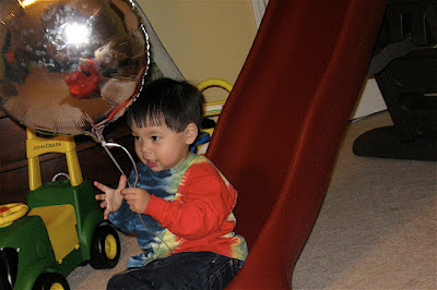 Reed was excited because Lola brought Reed a balloon with Elmo, Ernie, and all of the Sesame Street gang on it.